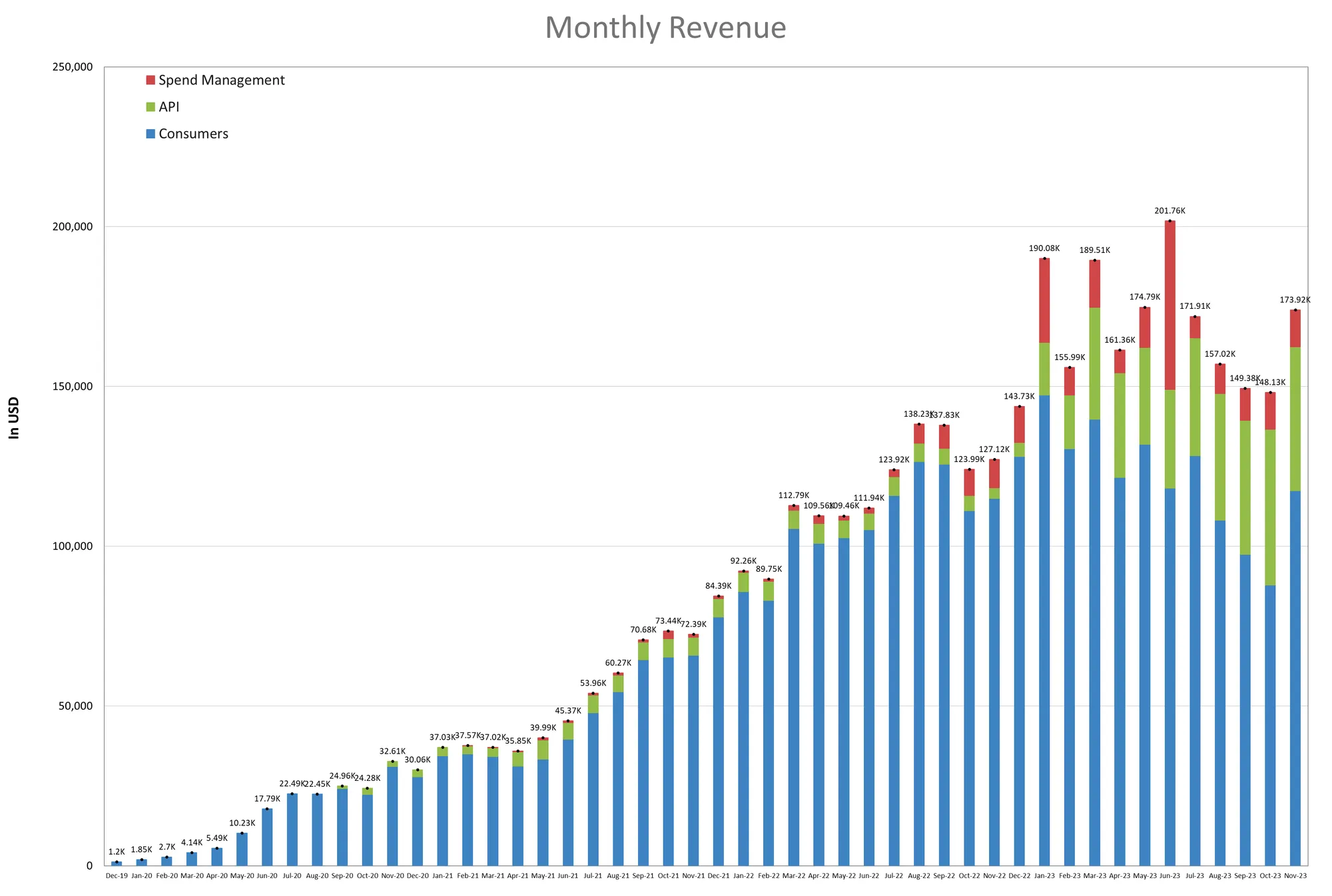 On a brighter note, our revenue for November reached an encouraging $174k, marking a 33.48% increase, largely driven by growth in the consumer platform.