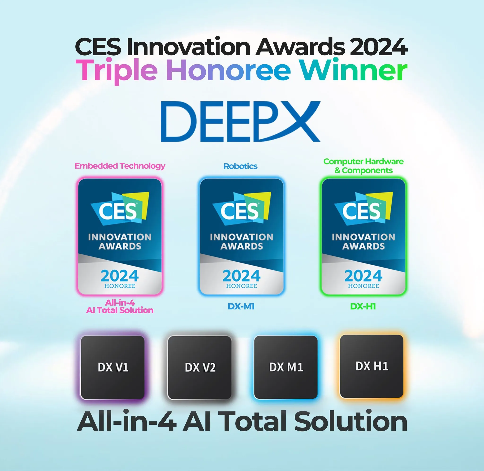 김녹원 딥엑스 대표이사는 “원천 기술 개발 기업이 개발한 첫 제품으로 CES 혁신상을 3개나 받은 것은 단 한 번 주어지는 최고 신인상과 같은 영광이라고 생각한다”며 “딥엑스는 끊임없이 신기술 개발을 지속하여 ‘딥엑스’하면 ‘세계 최고의 원천 기술 기업’이란 수식어가 떠오를 수 있도록 앞으로도 끊임없이 도전하겠다”고 소감을 밝혔다.