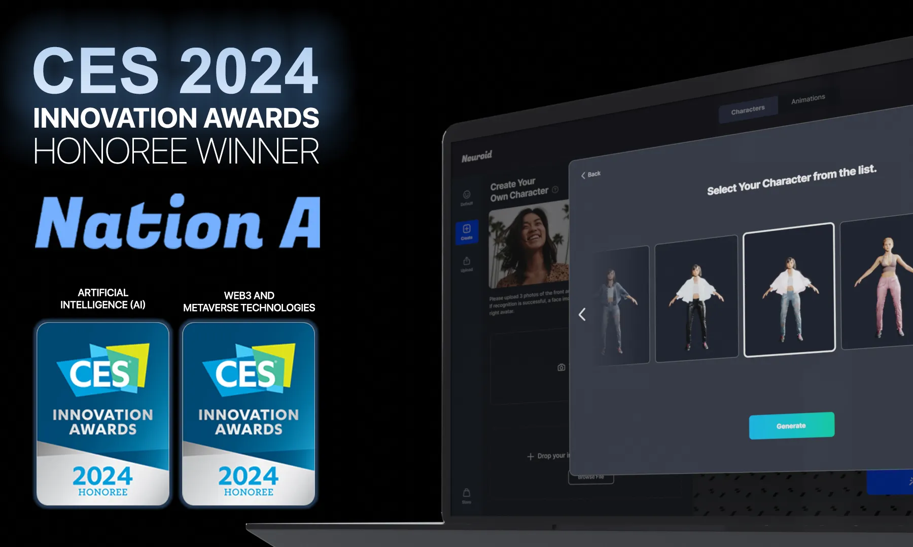 네이션에이는 2022년 설립한 생성형 AI 스타트업으로 이번에 첫 참가하는 CES에서 2개 부문 혁신상을 수상해 네이션에이의 기술과 제품의 혁신성을 전 세계적으로 입증하게 됐다.